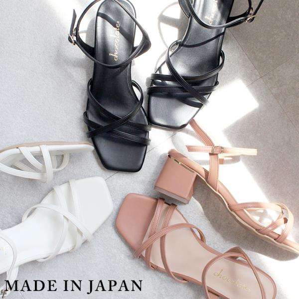 【送料無料 】 日本製 シンプル ストラップ サンダル スクエアトゥ 幅広 5cmヒール 柔らか 履きやすい 痛くない 歩きやすい カジュアル