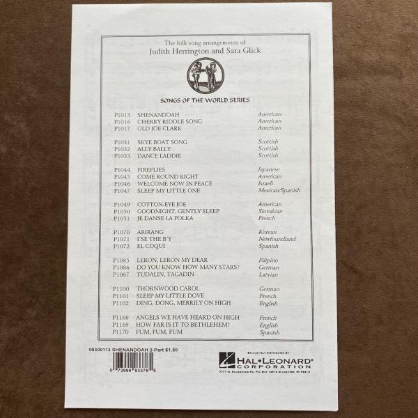 (アウトレット)楽譜 Hal Leonard / SHENANDOAH シュナンドー(アメリカ民謡)編曲 : Judy Herrington & Sara Glick