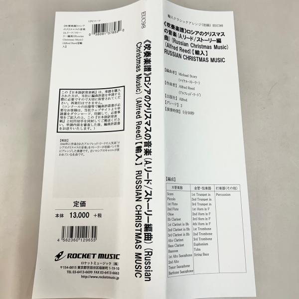 (アウトレット)輸入楽譜・吹奏楽 ロシアのクリスマスの音楽 Russian Christmas Music アルフレッド・リード作曲 (スコア・パート譜)