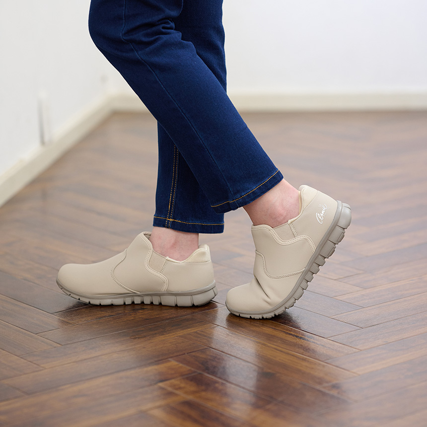 [Slide Fit]特許取得のスライドフィットシリーズは、かかとのカップがサポートし手を使わずに楽に履けます。