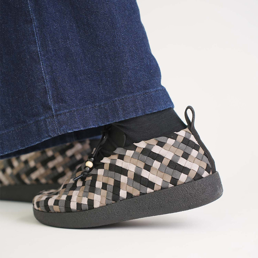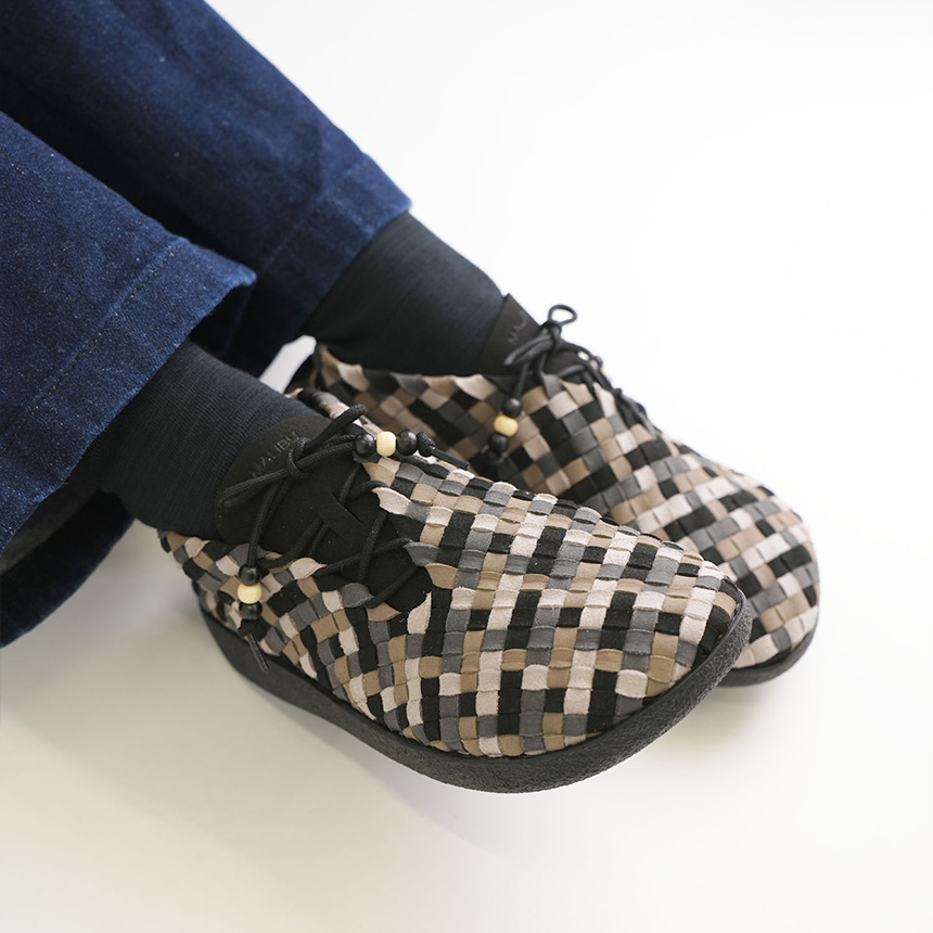 編み込みスタイルとビーズをあしらった非対称のシューレースデザインが、モダンでメキシカンなワラチスタイルの美学を、汎用性の高いモカシンのシルエットに融合させています。