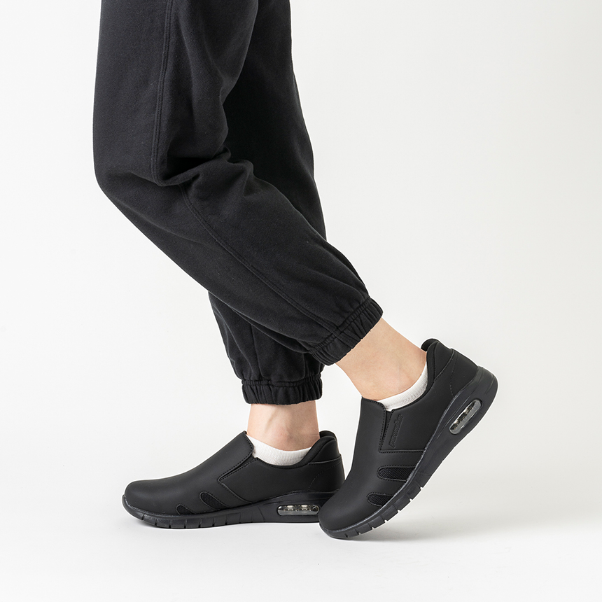 重い荷物を持っている時、両手がふさがっている時などにスッと履けて着脱が楽なモデルです。