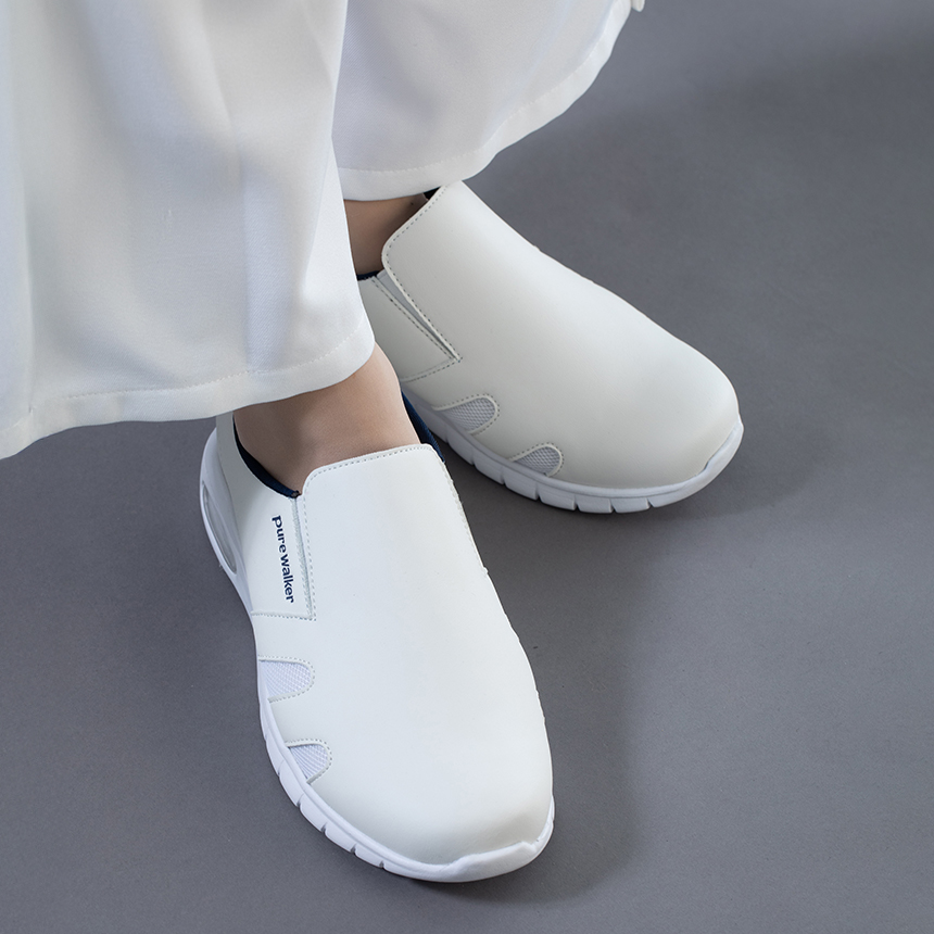 ピュアウォーカー スリッポン レディース PW0552 ハンズフリーシューズ ナースシューズ 手を使わずに履ける靴 軽量 エアクッション ホワイト ネイビー