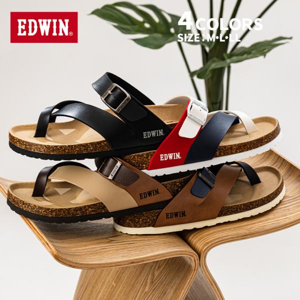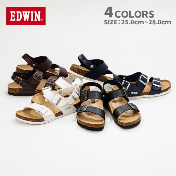 エドウィン EDWIN サンダル メンズ EB1002 ストラップサンダル ダブルストラップ コルクサンダル ブラック ホワイト ネイビー 天然コルク 父の日 ギフト