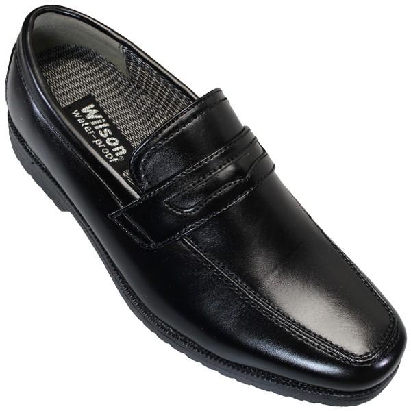 ウイルソン ビジネスシューズ メンズ 黒 ローファー 紳士靴 スリッポン 282 紐なし靴 学生靴 黒靴 防水 防滑 3E ゆったり ブラック Wilson