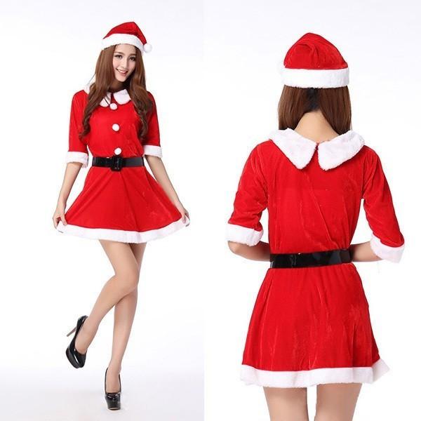 サンタ コスプレ 大人 コス レディース ワンピース スカート サンタクロース 衣装 クリスマス コスチューム ポンポン シンプル 女の子 レディース