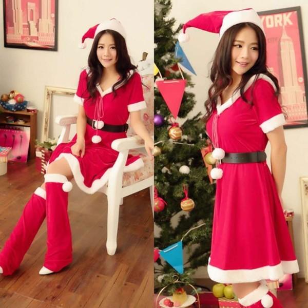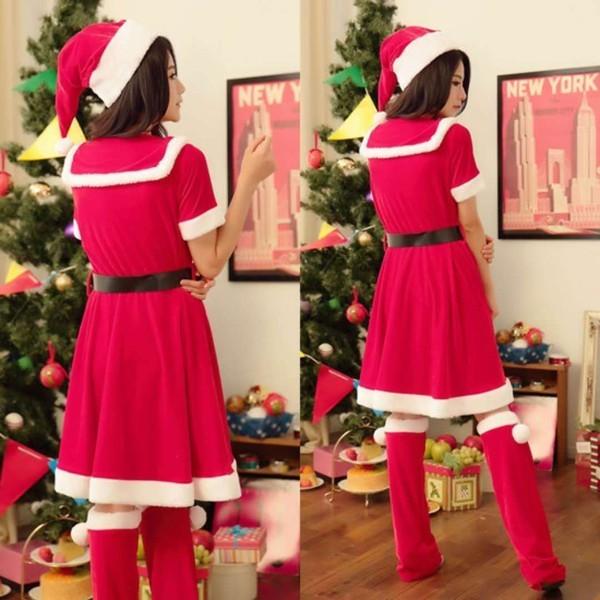 サンタ コスプレ 大人 コス レディース ワンピース 半袖 襟 付き セーラー 帽子 レッグウォーマー セクシー サンタクロース コスチューム 女の子