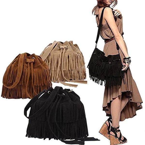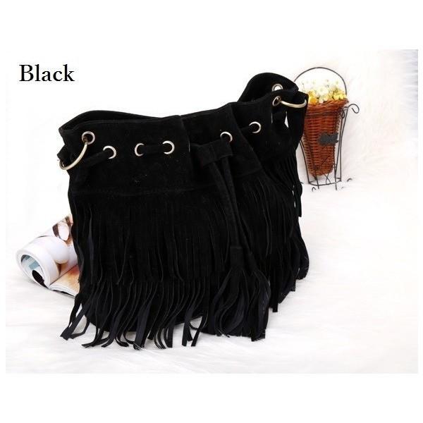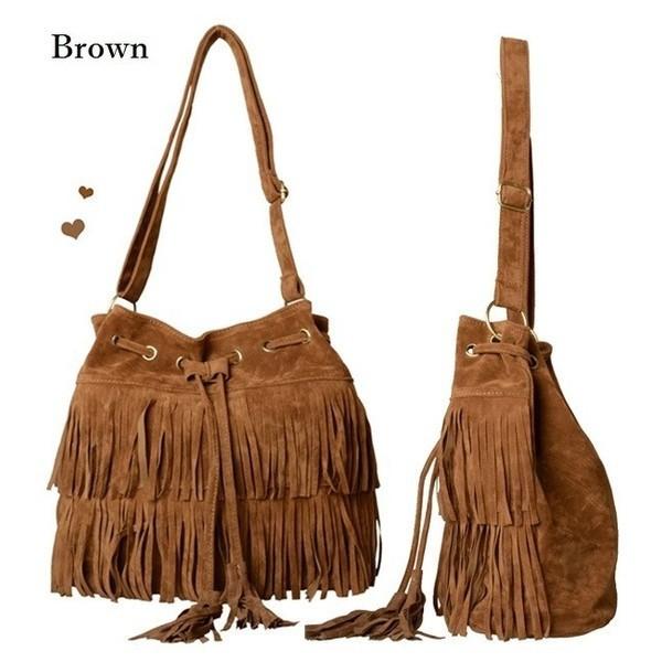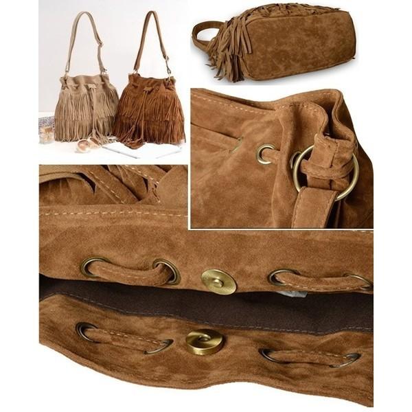 フリンジ バッグ ショルダーバッグ 肩掛け ショルダー 長さ 調節 可能 スエード調 フェイク スエード 巾着 バッグ 普段使い 大人 トート バック タッセル