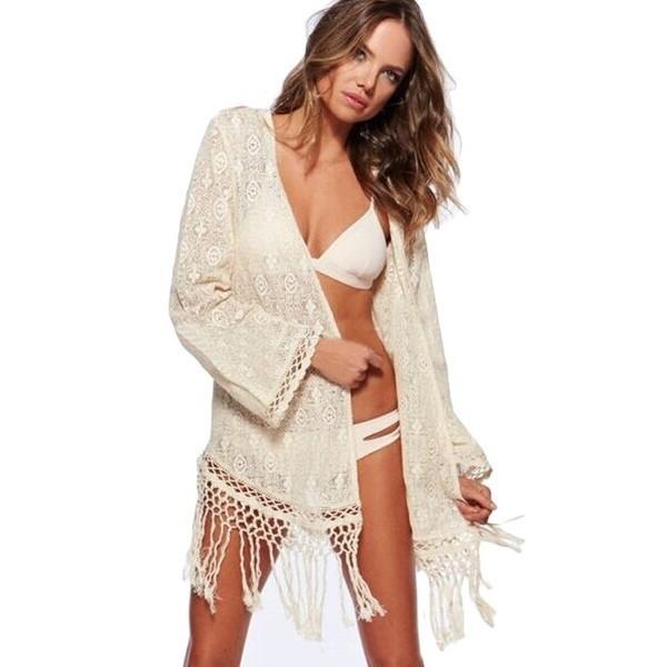 ビーチウェア レース カーディガン フリンジ キャミソール 水着 リゾート ポンチョ 水着の上に着る レディース 体形カバー クロシェ タッセル