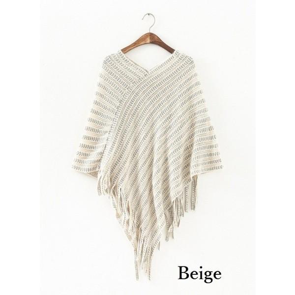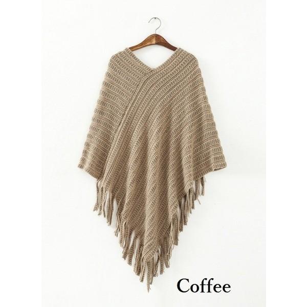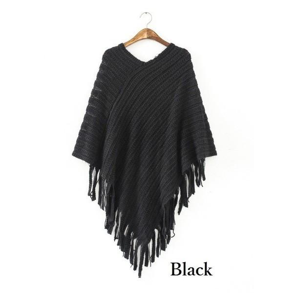 ポンチョ アウター フリンジ ニット ボヘミアン スタイル グラニー ざっくり ざっくりニット トップス トップ カーディガン セーター レディース 体形カバー