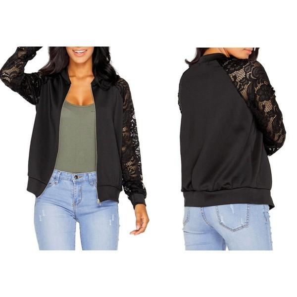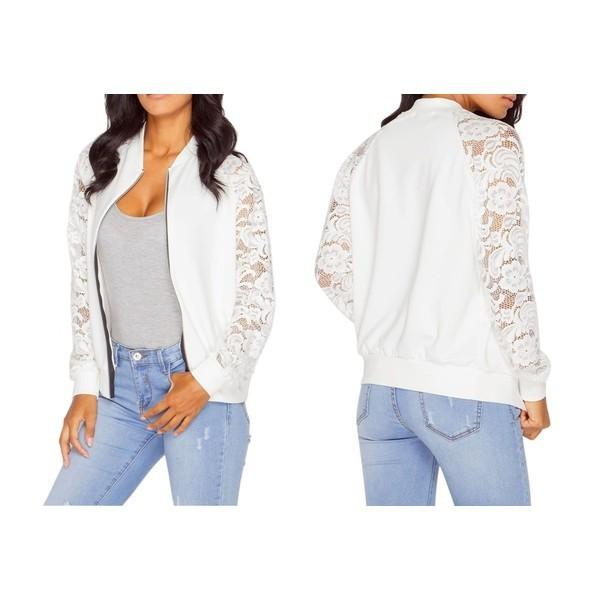 ソフトな着心地のレース×スエットのフルジップアップブルゾン