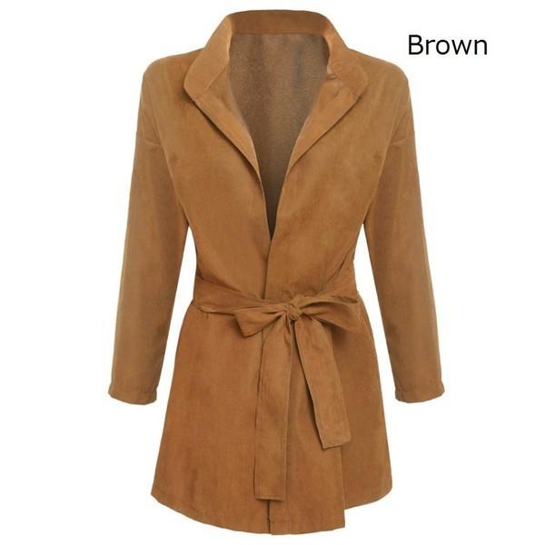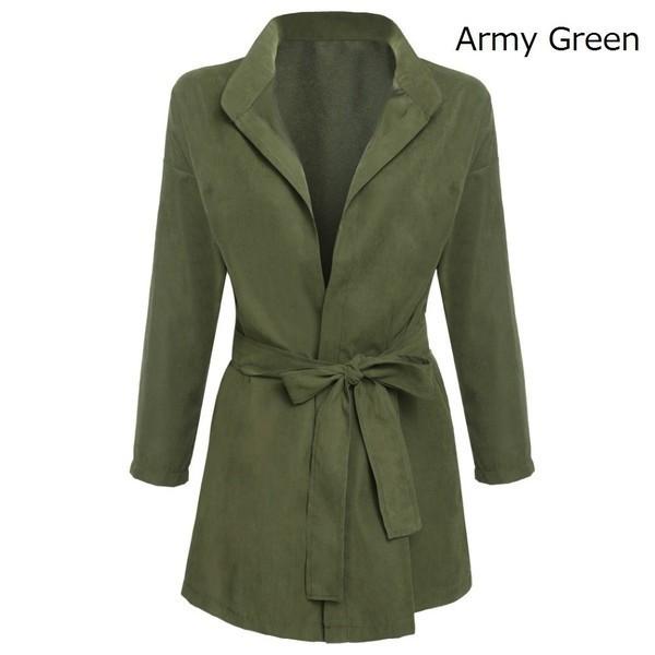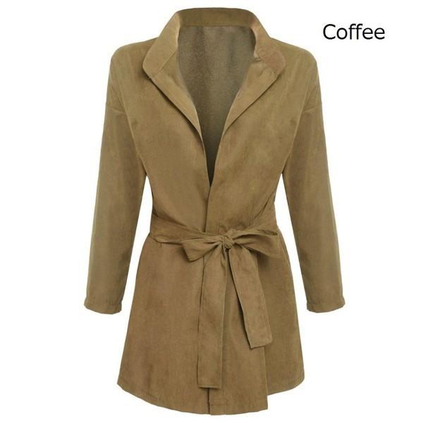 アウター コート ガウン 長袖 ジャケット スエード ピーチスキン アースカラー とろみ 素材 トレンチ コート テロンチ スプリング レディース ベーシック ベルト