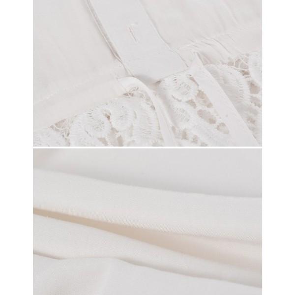 レディース トップス トップ 長袖 ロールアップ シャツ 綿 コットン チュニック やわらか とろみ シャツ ゆるテロ 裾 レース ウエストマーク