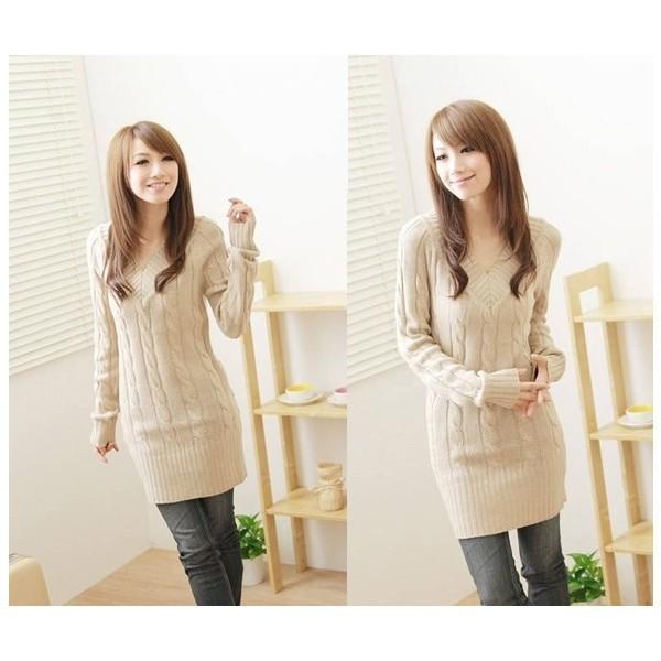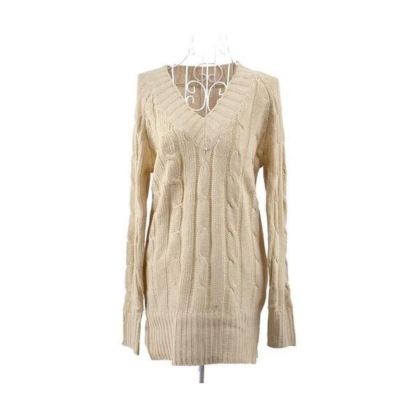 トップス トップ ニット セーター ワンピ チュニック 長袖 Vネック ケーブルニット ケーブル編み レディース フリーサイズ 体形カバー ざっくり ニット