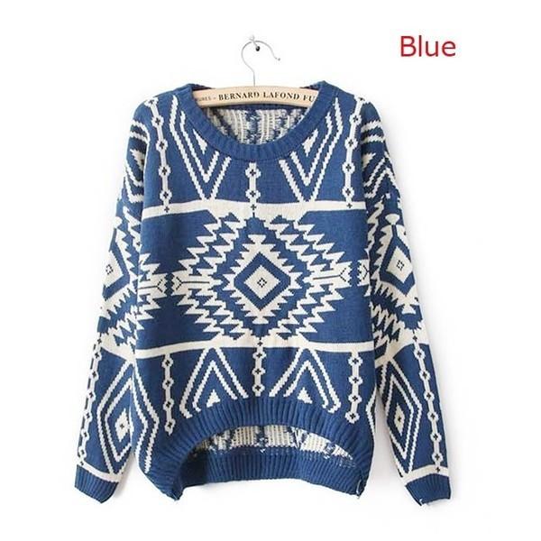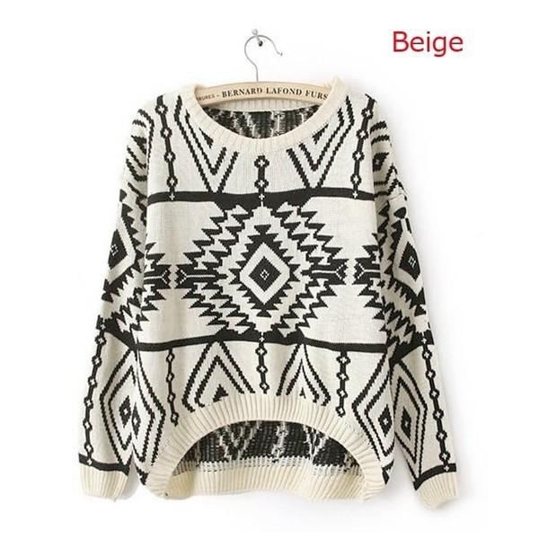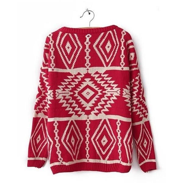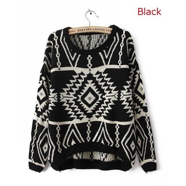 トップ トップス ニット ネイティブ オルテガ ボヘミアン 柄 スタイル ジオメトリック カジュアル ルーズ ルーズニット グラニー グラニースタイル セーター