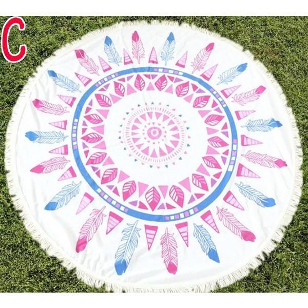 専用バッグ付 ラウンド ビーチ タオル サークル 円形 マット 大判 ボタニカル リゾート レディース 大きいサイズ タッセル フリンジ ヨガ ラグ プール