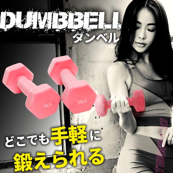 ダンベル (3kg 2個セット/ レッド ) 筋トレ/トレーニング/ダイエット [ 初心者 女性向け ] 水洗い可 防サビ 転がりにくい