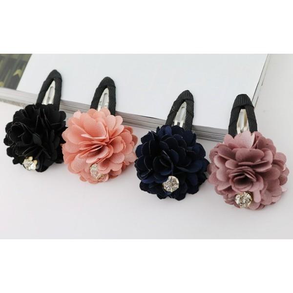 【2個セット】フラワーモチーフ ヘアピン パッチン ピン 髪飾り 髪留め ヘアアクセサリー 花びら ラインストーン 上品 エレガント ヘア 大人 クリップ