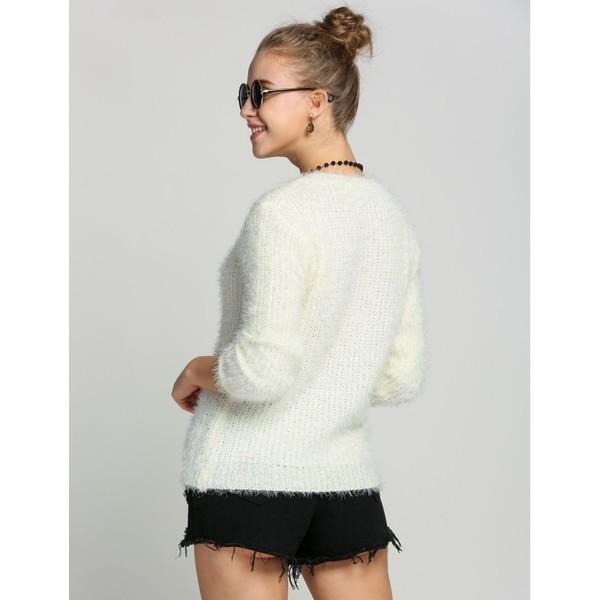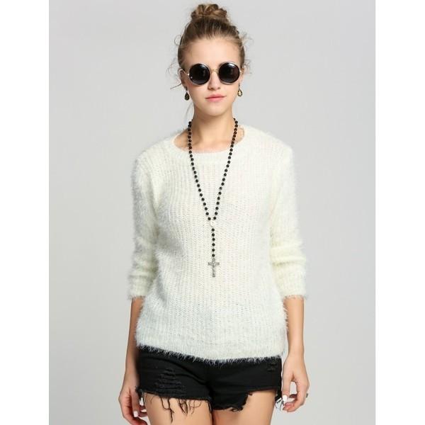 トップ トップス セーター ニット シャギー シャギーニット ホワイト 白 クルーネック カジュアル ルーズ ルーズニット ざっくり
