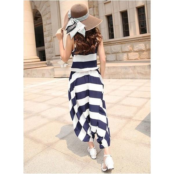 オールインワン サロペット ジャンプスーツ サルエル オールインワン ロンパース ノースリーブ パンツ ウエストゴム ボーダー レディース リゾート 体形カバー
