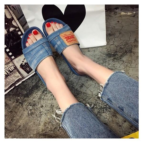 デニム サンダル ジーンズ スリッパ ビーチサンダル 夏 サマー 靴 くつ レディース 歩きやすい ぺたんこ ヒール なし シューズ