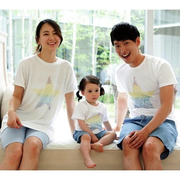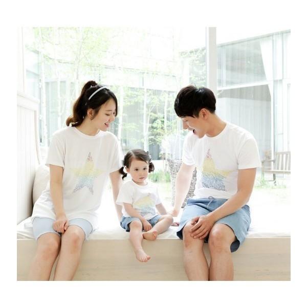 2枚以上送料無料 ペア ルック Tシャツ 半袖 シャツ スター 星 親子 ペア お揃い 星柄 カップル レディース ママ キッズ 女の子 プリンセス ガールズ 韓国