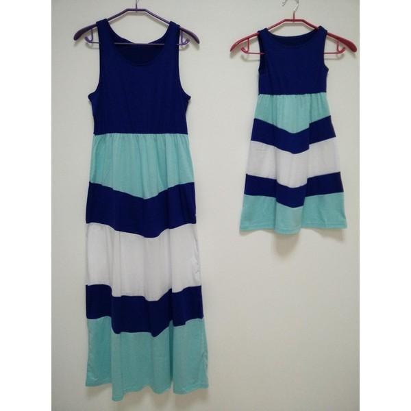 2枚以上送料無料 ペア ルック マキシ ワンピ ワンピース ノースリーブ ボーダー ストライプ 親子 お揃い レディース ママ キッズ 女の子 プリンセス ガールズ