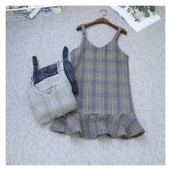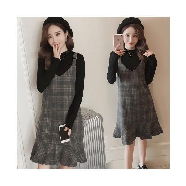 ジャンパー スカート ワンピース グレン チェック 色 Aライン モノクロ モノトーン ワンピ レディース ママ デート ひざ上 千鳥格子 インスタ 映え