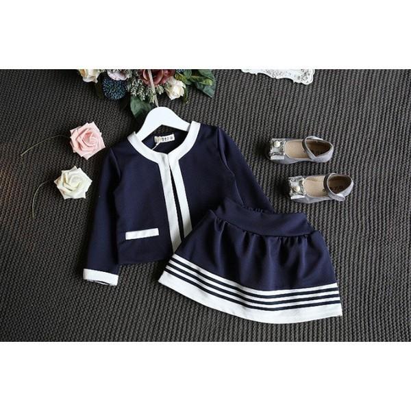 キッズ 女の子 セットアップ ジャケット スカート ネイビー ホワイト 紺 フォーマル 卒園式 入学式 演奏会 ピアノ 発表会