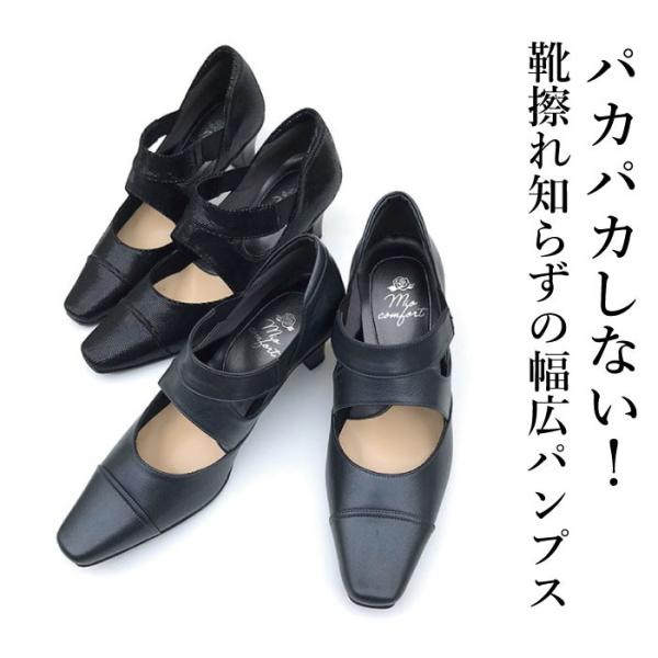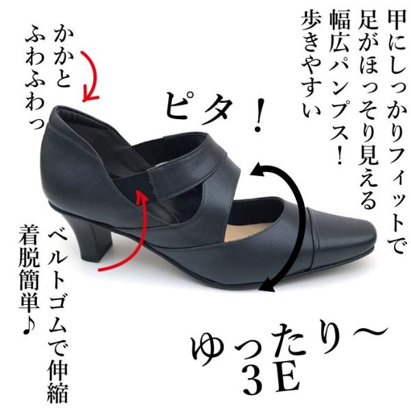 幅広 甲高 黒 パンプス 外反母趾 5E レディース ストラップ おしゃれ オフィス 仕事 就活 学生 冠婚葬祭 痛くない