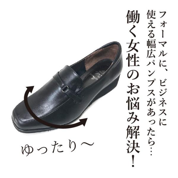 パンプス 4E 幅広 甲高 本革 婦人靴 痛くない ローヒール 黒 歩きやすい 外反母趾 おしゃれ レディース ギフト