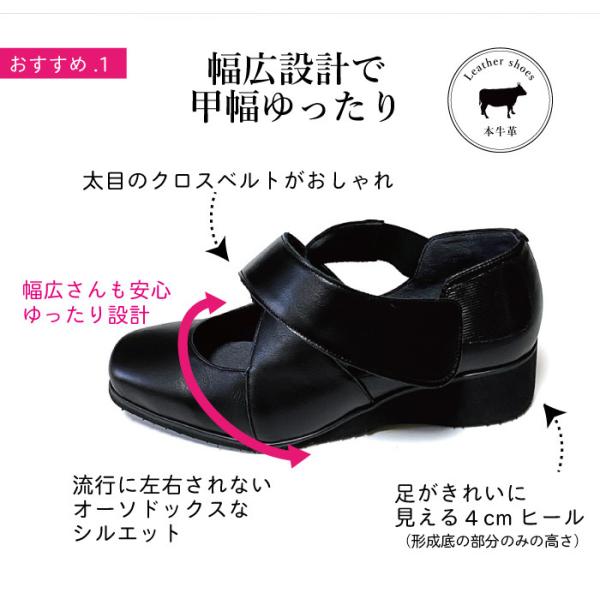 ストラップ コンフォートシューズ パンプス 本革 日本製 幅広 甲高 5E レディース 外反母趾 リクルート 婦人靴 靴