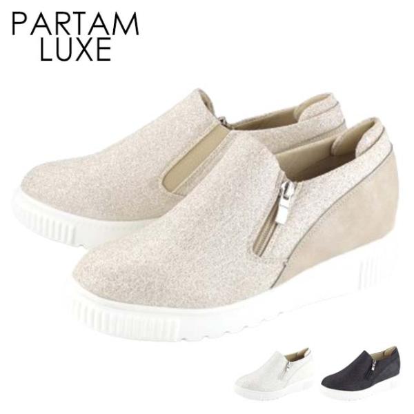 スニーカー レディース スリッポン PARTAM LUXE 40016 カジュアル ファスナー 厚底 ホワイトソール ラメ きらきら クッション性 プチプラ おしゃれ