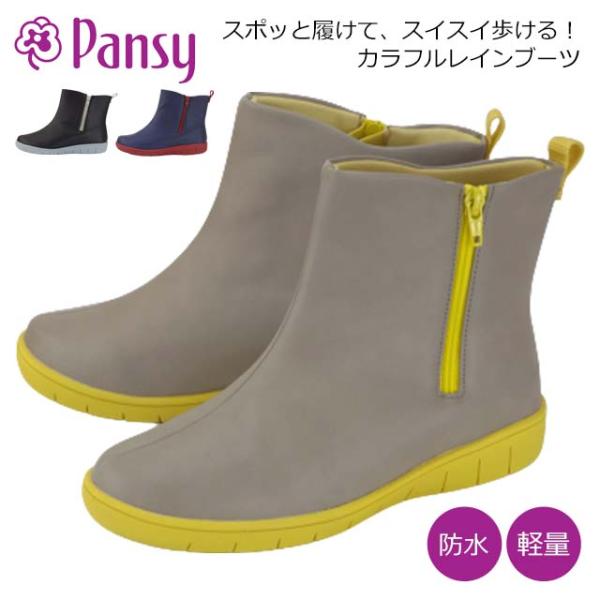 PANSY 4944 レインステップ レインブーツ レディース 長靴 防水 撥水 ショート丈 履きやすい ソフト 軽い ファスナー 抗菌 防臭 防滑 屈曲性 パンジー