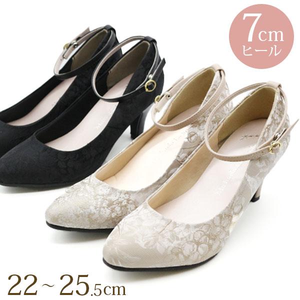 パンプス レディース ラウンドトゥ 痛くない 7センチヒール ストラップ ブラック 黒 ベージュ 大きいサイズ 結婚式 パーティ 上品 Fragrant フレグラント 1620