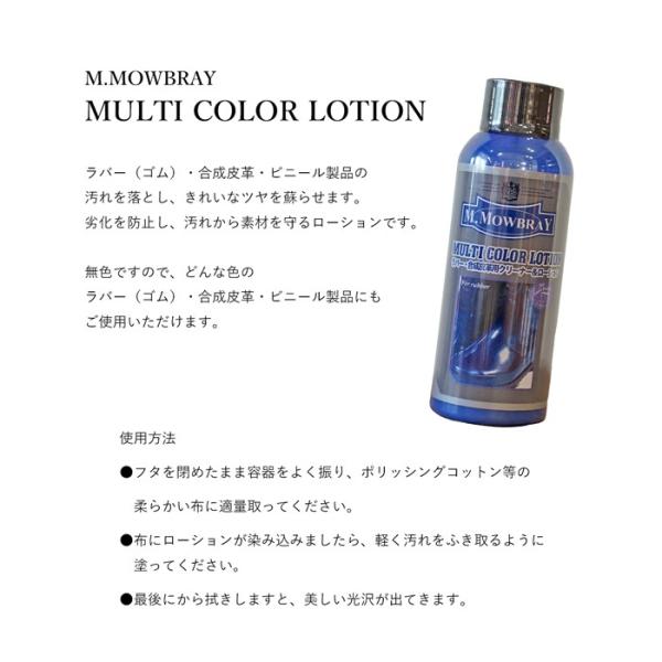 ラバー(ゴム)・合成皮革製品の汚れ落とし・ツヤ出し・保護M.MOWBRAY エム.モウブレイ マルチカラーローション 100mlケア用品