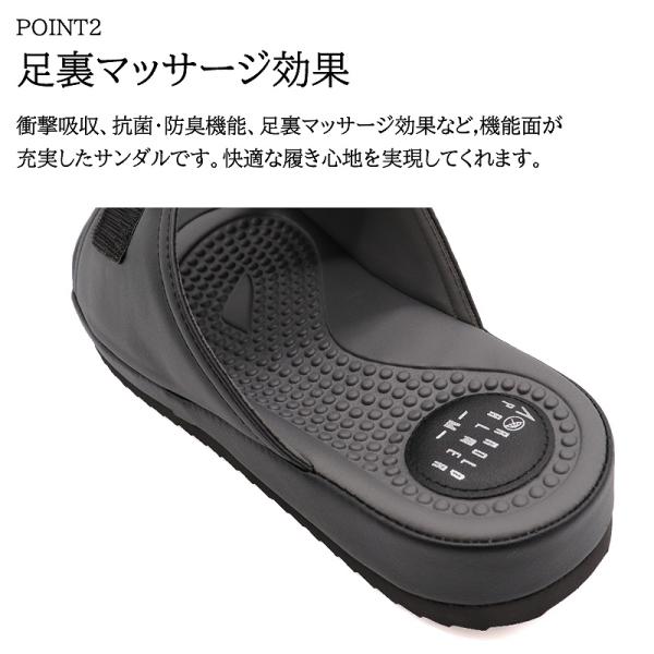 衝撃吸収、抗菌・防臭機能、足裏マッサージ効果など機能面が充実したサンダルです。