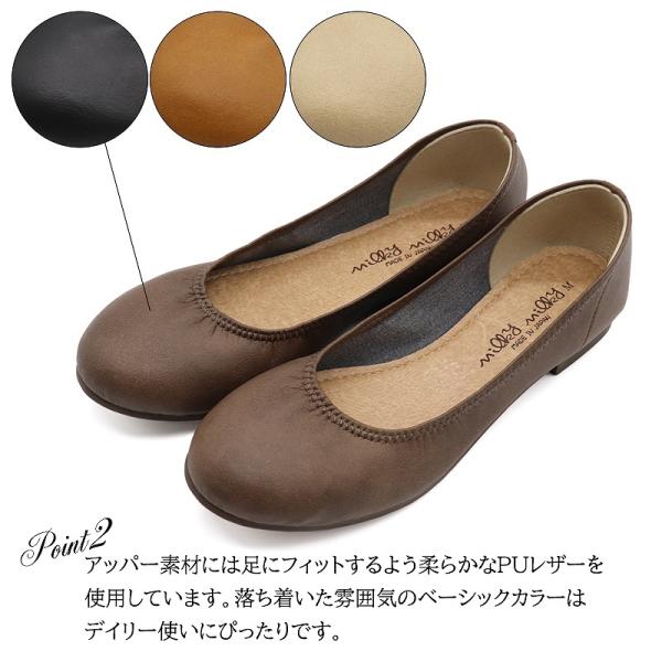 レディース パンプス 軽量 バレエシューズ フラットシューズ ラウンドトゥ ローヒール ぺたんこ靴 日本製