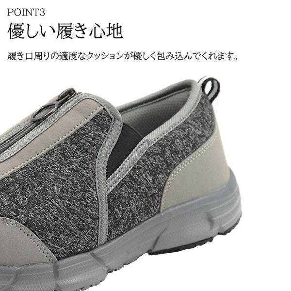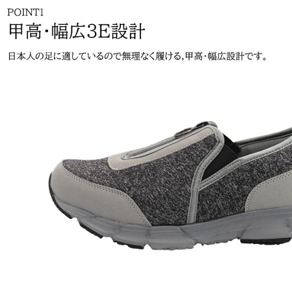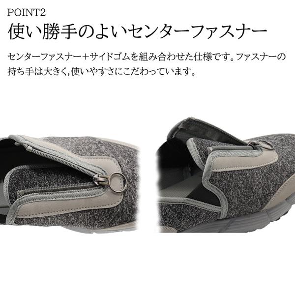 ・センターファスナー + サイドゴム仕様で脱ぎ履きがらくらく。