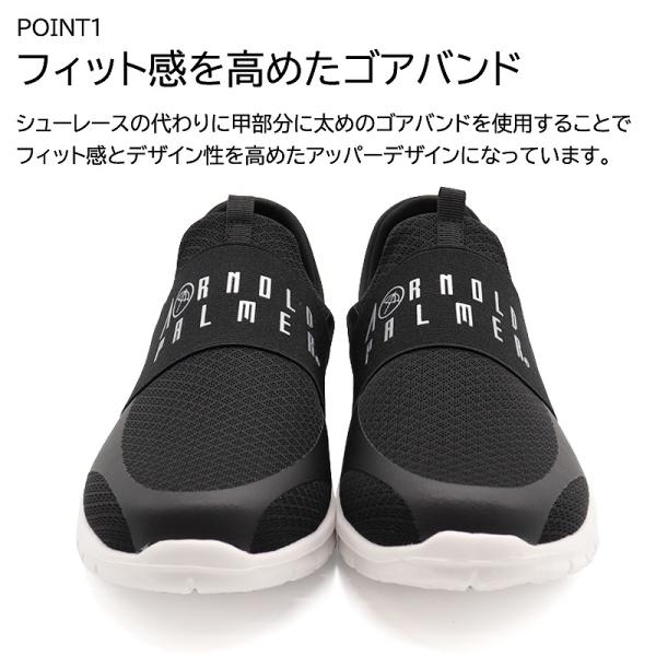 アーノルドパーマー スニーカー メンズ 軽量シューズ スリッポン 2WAY 靴 黒 紺 ゴアバンド