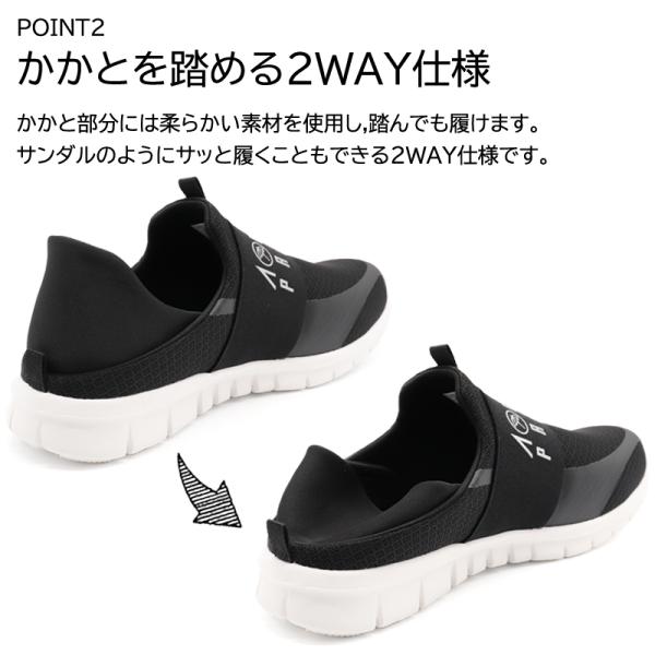 かかと部分は柔らかく踏めるのでサンダルのように履くこともできる2WAY仕様。