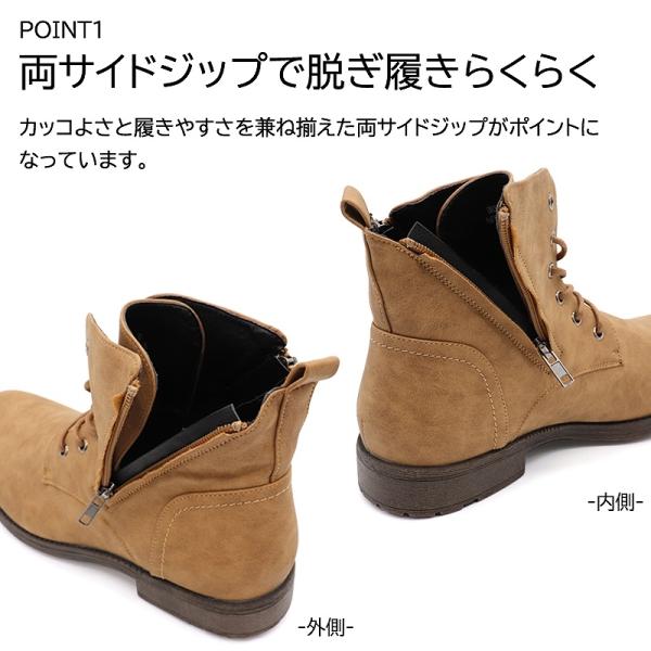 ショートブーツ メンズ レースアップシューズ サイドジップ靴 Bracciano