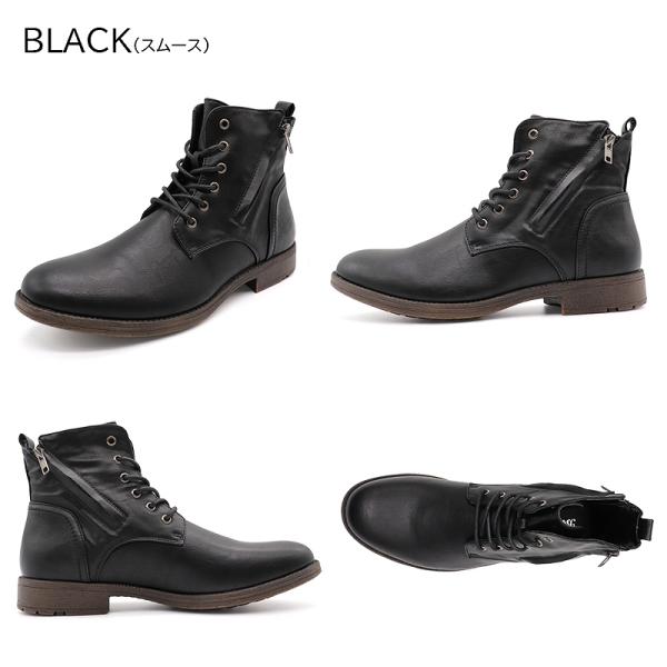 ショートブーツ メンズ レースアップ シューズ サイドジップ 靴 Bracciano ハイカット ビジュアル 爆買