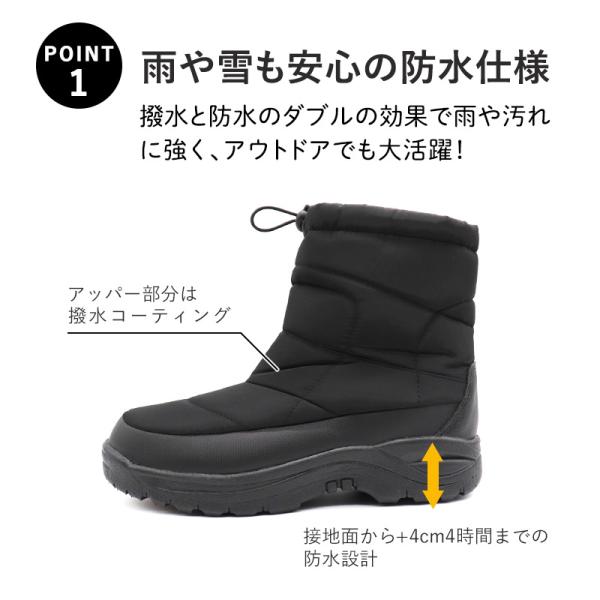 ブーツ メンズ ミドル ショート 防水 防寒 防滑 厚底 アウトドア 歩きやすい 軽量 黒 ハーフ 暖かい靴