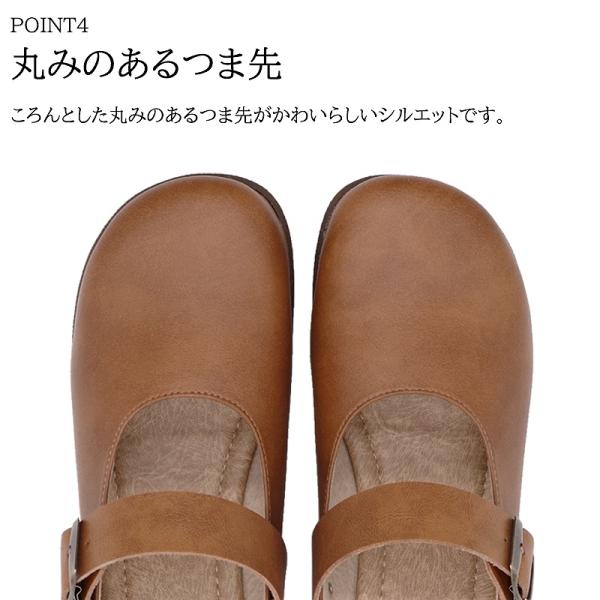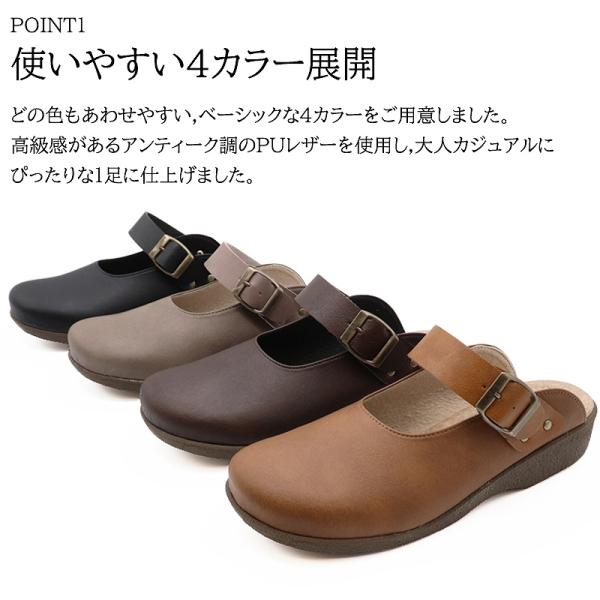 ころんとした丸みとアンティーク調のPUレザーを使用したナチュラル感にあふれた、かわいいサボサンダル。