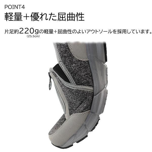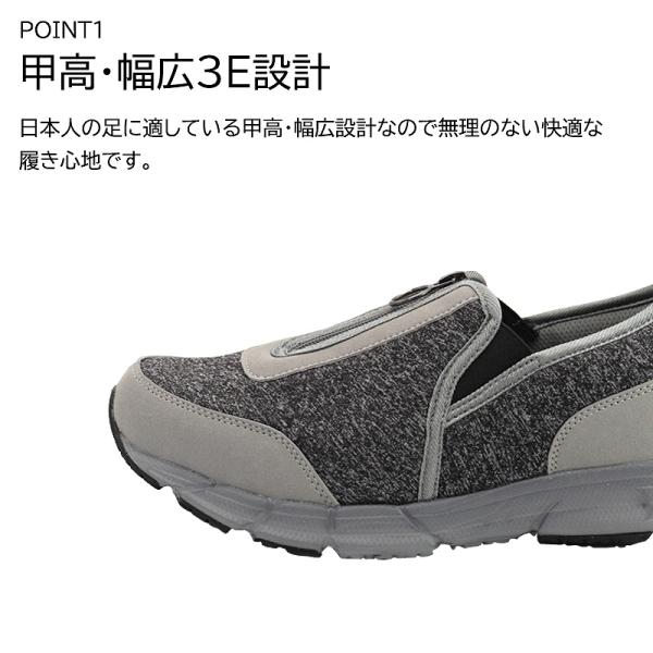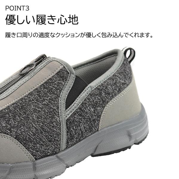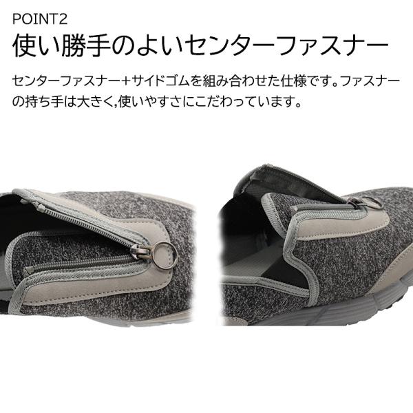 ・センターファスナー + サイドゴム仕様で脱ぎ履きがらくらく。