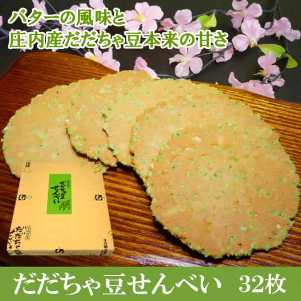 「元祖 だだちゃ豆せんべい」 山形県鶴岡市産 だだちゃ豆 庄内地方 煎餅 バター お菓子 廣盛堂 32枚入(2枚×16袋)