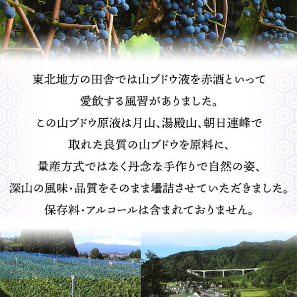 信仰の山「出羽三山」、雄大な朝日連峰に囲まれた自然郷・【あさひ】で作られた山ぶどうの100%天然果汁の原液。