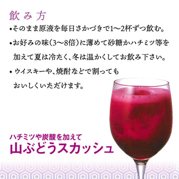 山ぶどうの100%天然果汁の原液。保存料は一切使用していません。