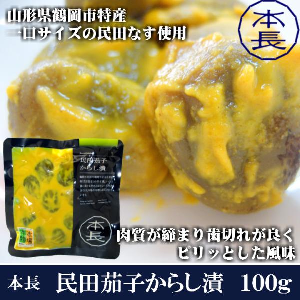 「民田茄子からし漬」本長 山形県鶴岡市 庄内地方 小なす 辛子漬 漬物 100g